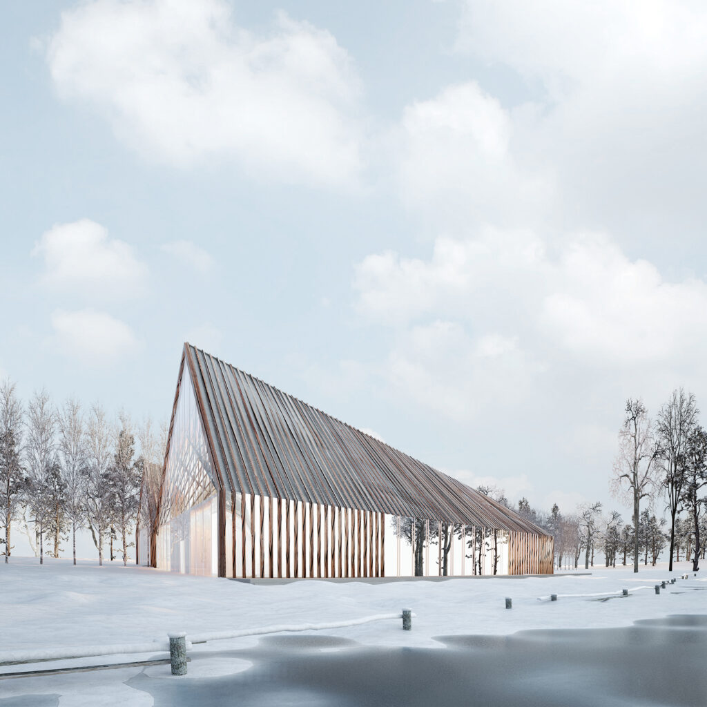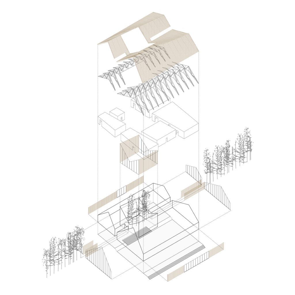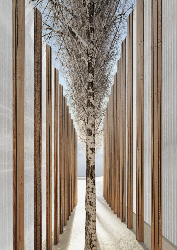 The design proposal takes inspiration from the birch trees. The concept illustrates an abstract representation of the linear trajectory of Forest Finns assimilation in Norway, their immigration from the fist half of 1600s to the final settling. A presence of a straight line of birch trees walk through the building and calls an universal plea for the history of migration, its importance and impact on the hosting cultures. Bjørkegården, the exhibition and dissemination of testimony from the forest-Finnish culture in Norway will continue to encircle nature as their pure form of living. Emphasis has been placed on the presence of birch trees as a metaphor that underlines the cultural assimilation of forest fins and the later social progress.