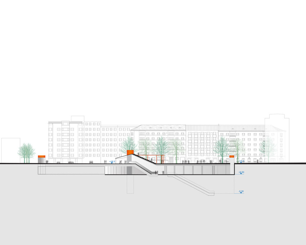 As the square is a treasure precisely because it doesn’t masquerade as an outdoor museum it has to function as a living place, changeable and democratic. This is what “The Public Stage” celebrates and promotes. The design vision for Töölöntori focuses on the sociality of the square and tries to minimize the presence of the built mass coming due to the underground transportation system. It is to be mentioned that the current design of metro entrances would definitely obliterate the open character of Töölöntori. Therefore, “The Public Stage” gathers the station facilities under a sloped roof and forms an outdoor amphitheater landing on the other side of Töölöntori. This simple intervention which consists of the main design solution is expected to enrich further the quality of the space by providing a unique venue for cultural activities.