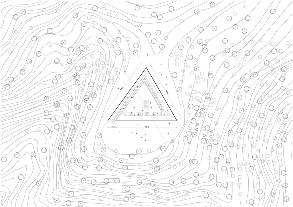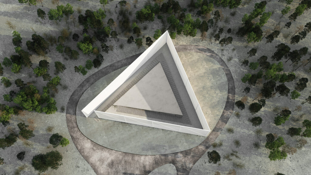 This monument goes beyond the human perception of modern construction and reveals an equivocal character of semi-open space. The research for the design form avoids the outright reliance on Christian symbolism, but through a triangular shape it naturally embraces the Trinity concept. A very unpretentious quadrate is folded on three parts, but its architectural approach and the embodiment of the Trinity symbolism in its finest coverage gives the final design the right to attempting to impress with an appearance of simplicity and greater importance. One million bricks house billions of words but infinite prayers, and the wall has to reflect the past history that the next generations would build their faith upon. Therefore ours design comes as a harmonization of nature with architecture and monumentality: An elementary structure that creates a central piazza opened towards the sky but closed for eyes, opened for the wind and rain but closed by its own shadows. It provides a connection with the nature where it will be located while the perforated bricks create a wind protection while offering also a visual connection on different levels.